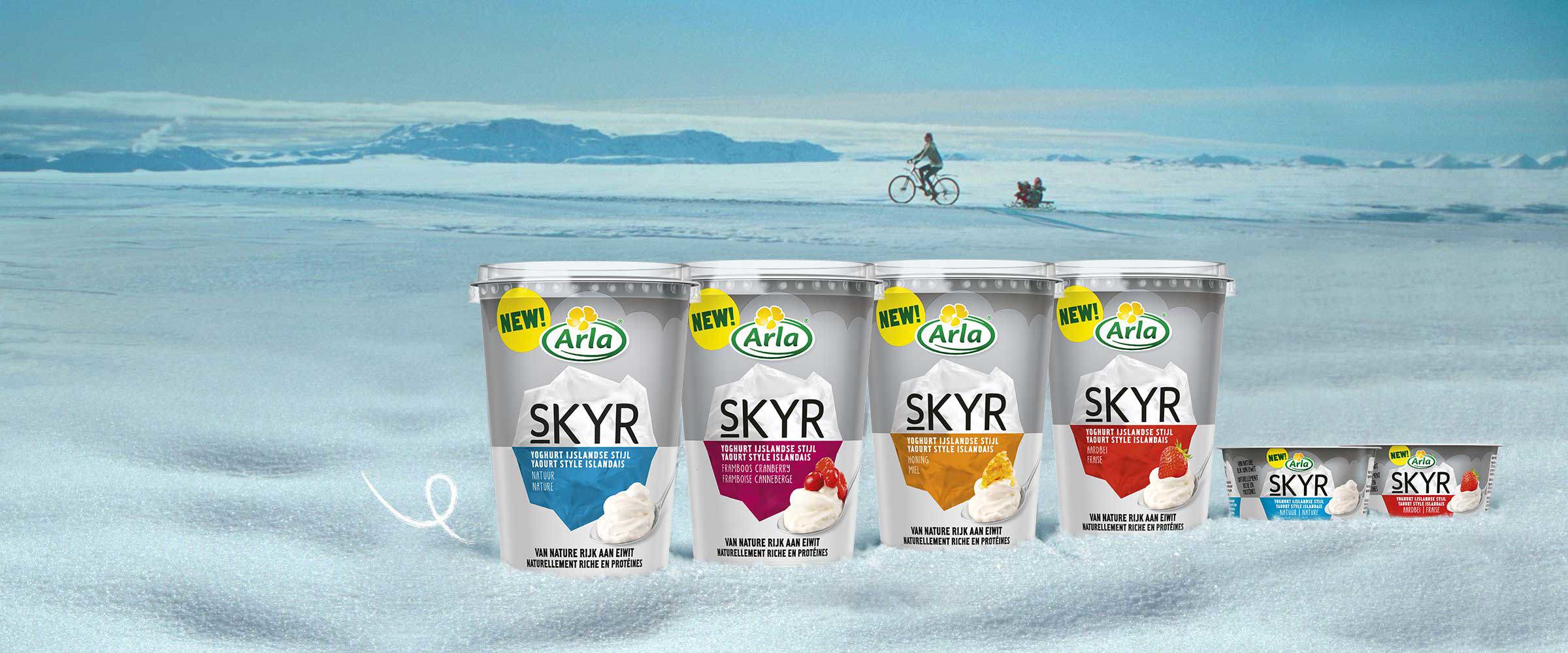 De IJslanders houden het na het ontbijt wel vol tot de lunch. Hun geheim? Skyr! Arla® skyr is gemaakt naar IJslandse traditie. Van nature rijk aan eiwitten, romig van smaak en toch 0% vet.